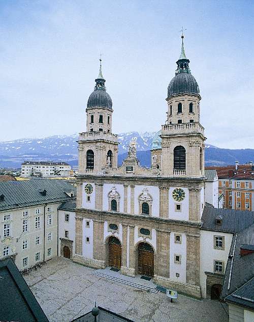 The Jesuit Church was built between 1627 and 1640, however the construction of the towers in their current shape was finished not before 1901. In 2003/04 a thorough renovation of the interior took place. On this occasion, the main sanctuary, which had been destroyed during World War II, was reconstructed and a new altar was installed in the middle. Besides that, a new entrance to the Crypt was built close to the main entrance. In the Crypt, there are the tombs of the Jesuits who died in Innsbruck as well as those of the founders of this church, Leopold V. and Claudia de Medici. In the tower, there is the 4th largest Austrian bell (weight: 9,200 kg; only the "Pummerin" in Vienna St Stephen's Cathedral, the Bell of St Salvator in Salzburg Cathedral, and the "Friedensglocke" in Moesern are larger).