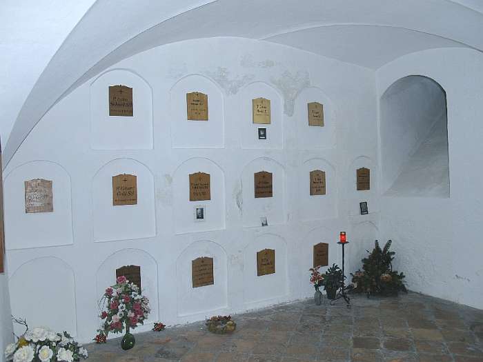 The princes' vault is situated in the Crypt (12), built in 1636 — now with a new access in front of the wrought-iron grill. Eleven princes are buried there, among them six from the House of Habsburg. The founders of the church, Archduke Leopold V (+ 1632) and his wife Claudia de' Medici (+ 1648) are buried here.