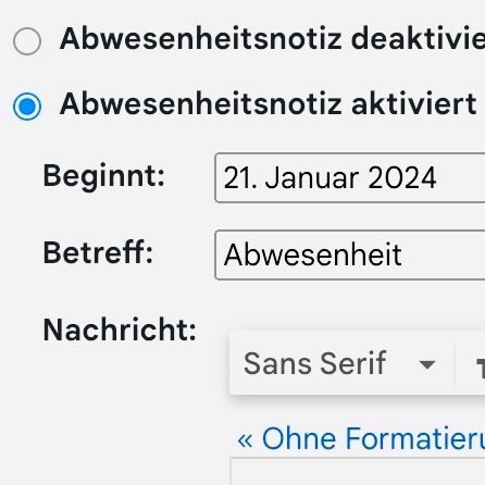 Kaum ist die E-Mail abgeschickt, ist auch schon die Antwort da: Vielen Dank für Ihre Nachricht, ich bin derzeit nicht erreichbar, mit der Bitte um Ihr Verständnis, freundliche Grüße ... - Eine Abwesenheitsnotiz, meist eine kleine Enttäuschung. Ich fühle mich ausgebremst in meinem Anliegen, denn man schreibt ja nicht grundlos E-Mails.